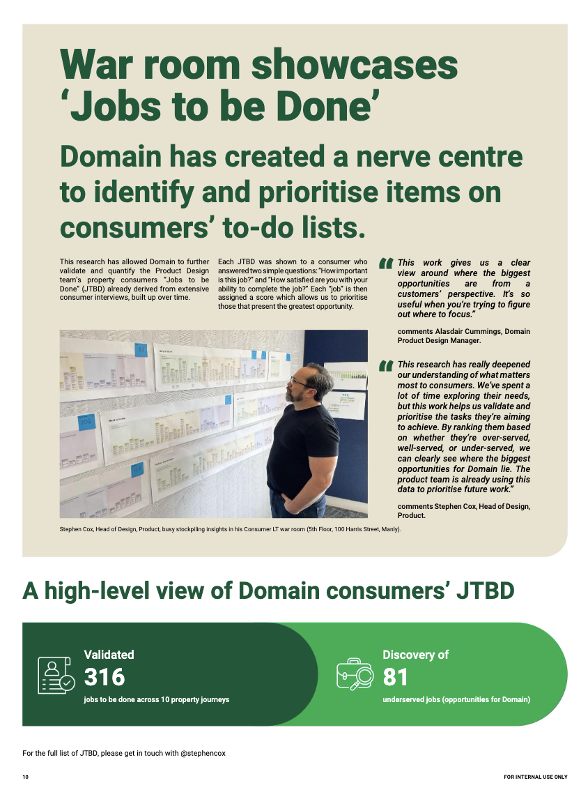 - Deep dive on 12 property ‘journeys’ - JTBD validation component - 8000+ surveys, 120 questions, 13 reports